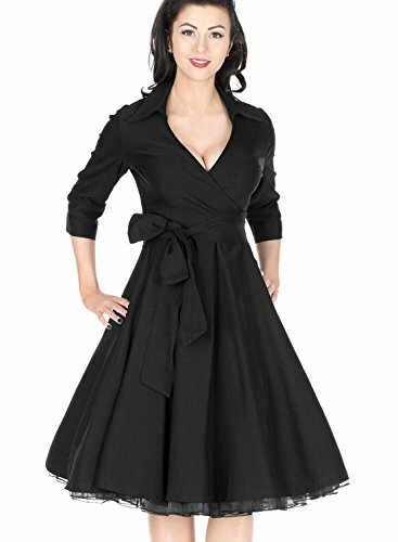 Miusol® Women’s Deep-V Neck Half Sleeve Bow Belt Vintage Classical Casual Swing Dress